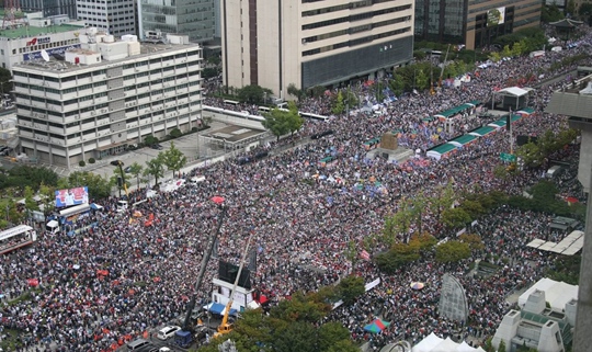 具有國家象征意義的光化門廣場,被示威者“一劈兩半”