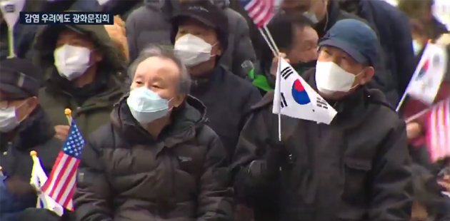 參與活動的人揮舞著太極旗和星條旗,高呼“釋放樸槿惠”等口號。