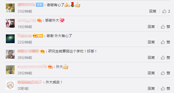 這暖心一幕,讓中國網友頗受感動和鼓舞。在微博相關話題的留言板上,中國網友齊呼“謝謝”。不少網友感慨,“格局就是不一樣”“有心了”“外大威武”。