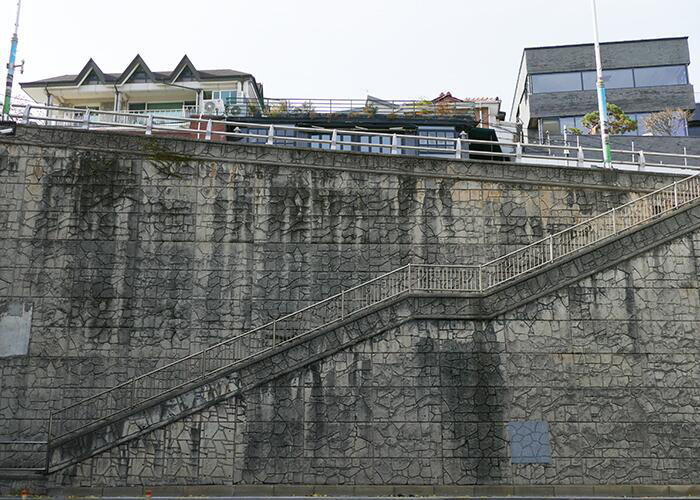 基澤一家前往樸先生家時會經過一段很長的階梯,這段階梯距離友利超市僅一分鐘的步行距離。雖然這樣的長階梯在韓國的住宅區里十分常見,但作為《寄生蟲》的取景地,這里也自然成為了影迷熱門打卡地之一。