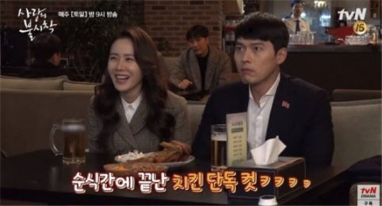 人民網訊 18日,某網絡社區上傳了玄彬和孫藝珍出演tvN《愛的迫降》的花絮截圖,暗戳兩人在桌下手拉手。