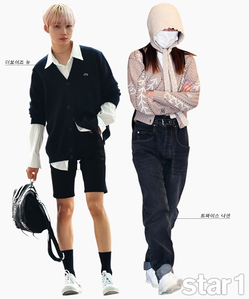 TWICE成員林娜璉則搭配了印有圖案的卡其色短款開衫、寬松的牛仔褲和針織帽,展現了可愛的造型。雖然開衫是百搭的基本款,但加入圖案細節,讓人感受到獨特的魅力。