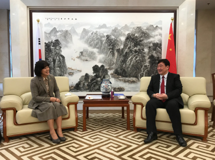 人民網訊 據中國駐韓國大使館消息,2月26日,邢海明大使在使館會見韓國新萬金開發廳廳長金賢淑!