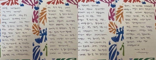 公開的照片中,Gummy正在查收生日禮物,這是Gummy傳出懷孕消息后首度公開近況。照片中的Gummy面帶微笑,表情明朗。她還給祝賀自己生日的粉絲們送上了手寫信和歌曲禮物,讓粉絲感受到了無限關愛。