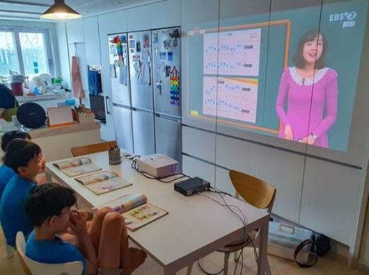 20日下午,韓國演員宋一國在個人社交平臺上曬出三胞胎“大韓、民國、萬歲”網課開學的照片。照片中,三胞胎身穿同款藍色T恤并排而坐,觀看投影儀畫面,認真十足。