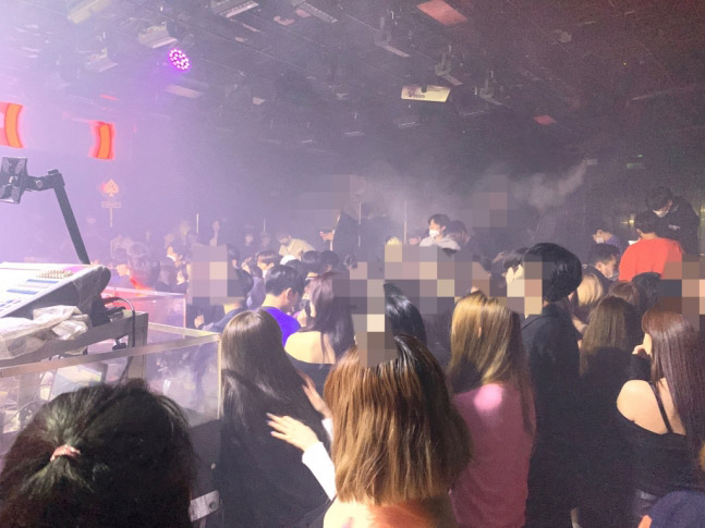 資料圖:今年3月,首爾一家夜店人員爆滿。(Money Today網站)