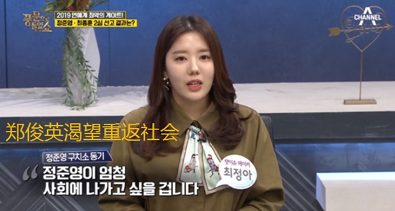 據韓國Channel A電視臺18日報道,曾與鄭俊英一同被收押的知情人士說,在押人員都知道鄭俊英是歌手,因此偶爾會有人指示他起立唱歌,而鄭俊英會老實聽從。知情人士還表示,鄭俊英現在非?释胤瞪鐣。