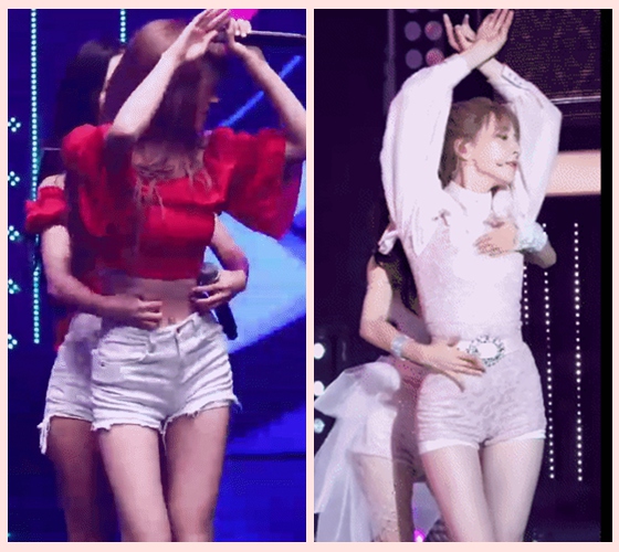 有網友發現,在表演時苞娜疑似更改舞蹈動作,并用指甲抓傷了恩熙,腹部的紅色抓痕清晰可見。據悉,此前的舞蹈動作是苞娜用手掌撫摸恩熙。