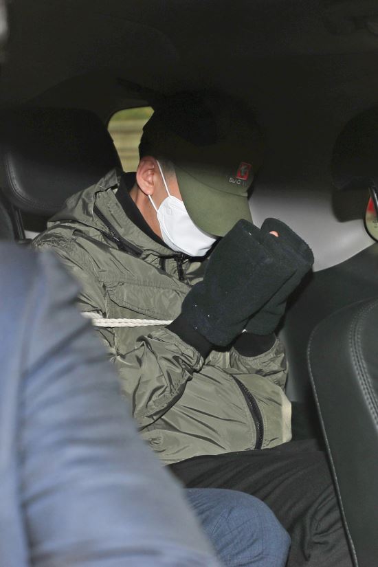 圖片說明:25日,犯罪嫌疑人現身首爾中央地方法院,接受拘捕前嫌疑人審問。(圖源:韓聯社)