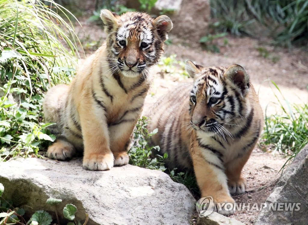 21日上午,在京畿道龍仁市愛寶樂園,韓國虎兄妹即將迎來出生百天。