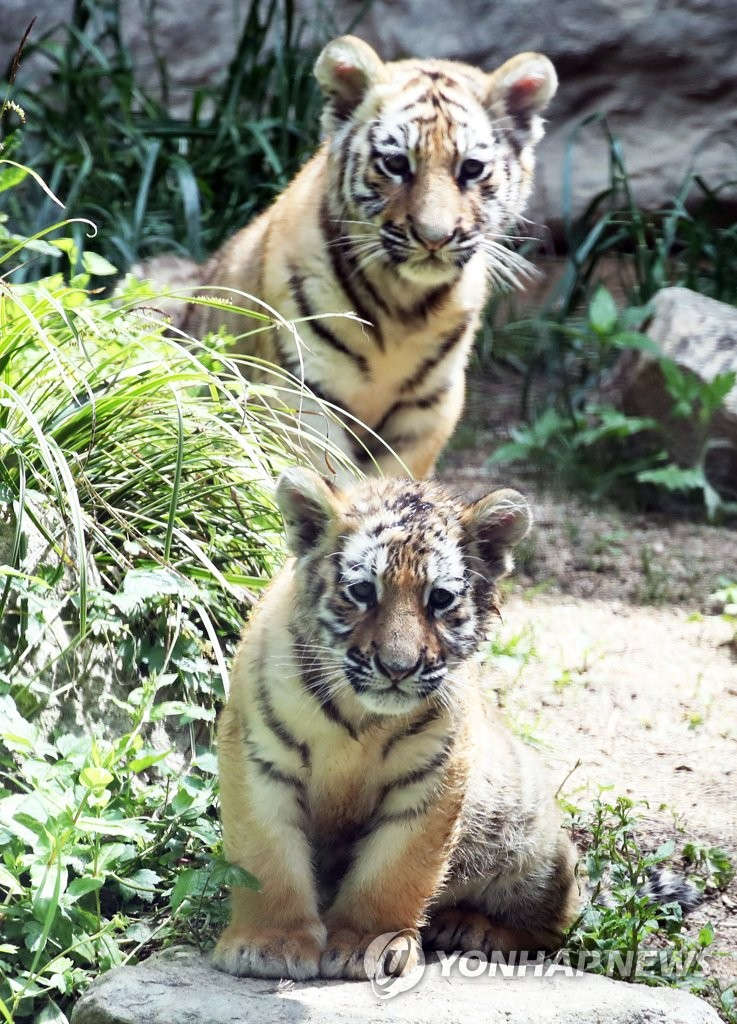 21日上午,在京畿道龍仁市愛寶樂園,韓國虎兄妹即將迎來出生百天。