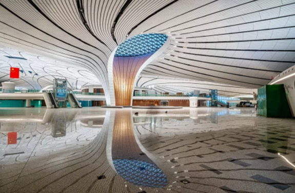 大興機場是一個世界級規模的機場,于2019年9月正式投運。其獨特的造型設計和內部景觀十分吸引眼球,通航半年來已成為旅行達人心馳神往的打卡勝地。大興機場航站樓設計高度為50米,采用了五指廊的設計,可最大限度縮短旅客的步行距離。經測算,從航站樓中心到達指廊最遠端,步行距離只有600米,旅客只需8分鐘就能到達最遠的登機口。航站樓采用屋頂自然采光和自然通風設計,同時實現照明、空調分時控制,采用地熱能源、綠色建材等綠色節能技術和現代信息技術。