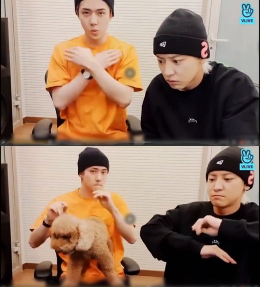 在直播中,吳世勛和樸燦烈雖然只是簡單地上半身擺動了幾下,但也非常有感覺。視頻中,世勛還抱著一只可愛的狗狗,手舞足蹈,十分可愛!