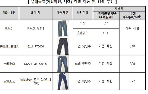 7月7日,韓國消費者院發布的檢測結果顯示,在被檢測的30個知名服裝品牌的成人及兒童牛仔褲中,有4個品牌的商品含有超過安全標準的有害物質。其中,在Withjeans成人品牌牛仔褲的衣料和口袋中檢測出致癌物質芳香胺,且含量超過標準值(30mg/kg)的2.7倍。芳香胺是苯胺的一種,長時間與皮膚接觸會引發皮膚炎癥甚至癌癥,被世界衛生組織國際癌癥研究機構認定為人體致癌物質。據悉,2013年,韓國在對市面銷售的品牌牛仔褲進行檢測時,就曾發現部分商品存在芳香胺。相關制造商向消費者道歉,并采取換貨、退款等彌補措施。