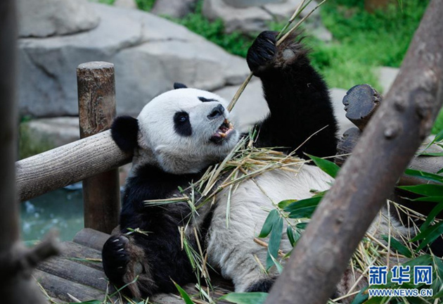 “樂寶”在愛寶樂園享用竹子。 圖源:新華網