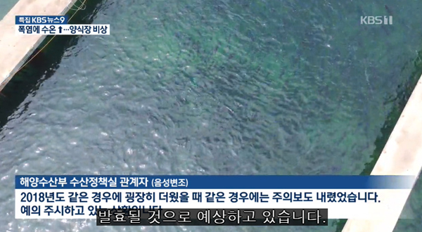 韓國海洋水產部水產政策室相關人士表示,2018年出現類似情況時,有關部門即時發布了天氣預警。目前,該部門也在密切關注水域溫度的變化。