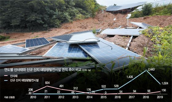 專家一致認為,雖然今年韓國國內集中暴雨天數較多,但近幾年太陽能發電設施的開發濫象亦不能忽視。為滿足發電需求,太陽能發電設施須安裝在具有傾斜度的山坡上。因此,在施工過程中,周邊樹木植被遭到嚴重破壞,土質松動,易發生山體滑坡、泥石流等災害。