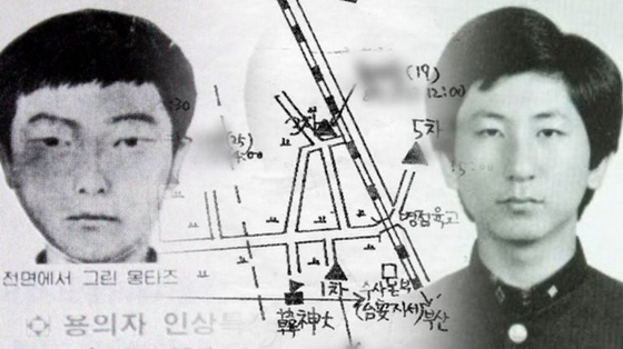 左面為1980年代當時韓國調查機關制作的嫌疑人側寫圖;右面是李春宰高中證件照。 圖源:韓聯社