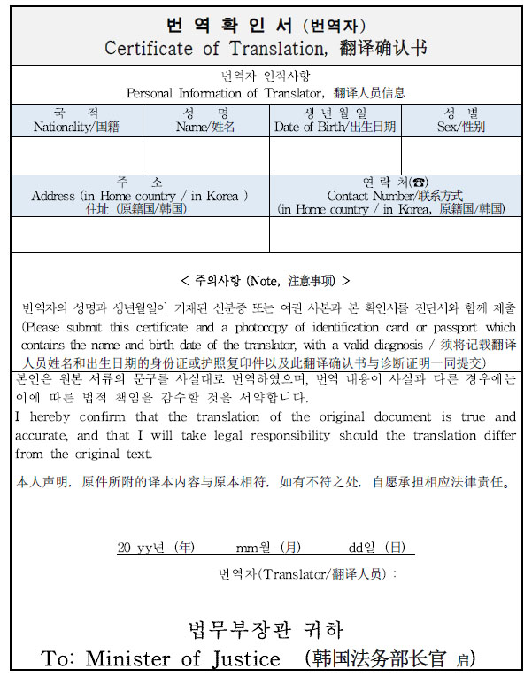 二、如確需來韓,請詳細了解相關規定,按時接受核酸檢測,相關陰性證明需在值機時出示,入境韓國時提交,文字要求為韓文或英文,中文版本的可提供韓、英譯文和翻譯確認書(樣式見附件),無需做翻譯公證。