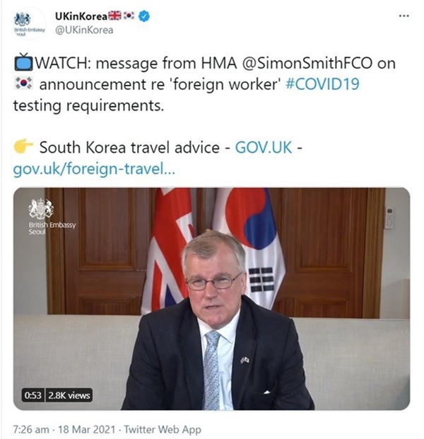 英國駐韓大使西蒙·史密斯 圖源:英國駐韓大使館推特賬號