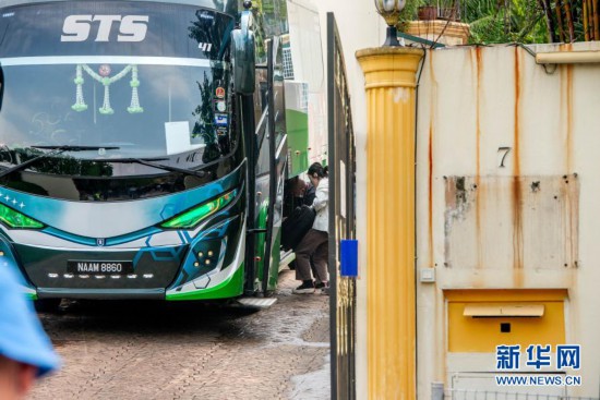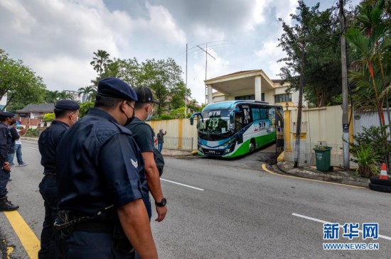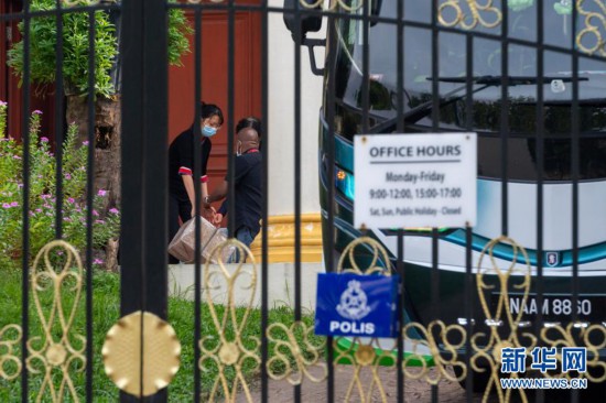 3月21日,一輛大巴車從位于馬來西亞吉隆坡的朝鮮駐馬來西亞使館駛出。新華社發(張紋綜攝)