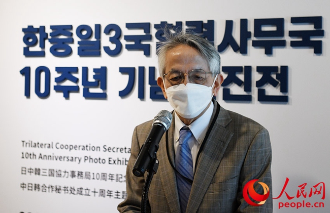 道上尚史代表秘書處發表了講話,他說,希望通過此次圖片展,強化大家對中日韓三國間合作重要性的認識。他提到,秘書處先后參與了21次部長級會議,有力地推動了三國在經濟、環境、保健福祉、教育等方面的互學互鑒。同時,除了政府間的交流外,秘書處也致力于鞏固和深化三國在文化、學術、媒體等各領域的合作。最后,道上尚史對今后秘書處的工作進行了展望。