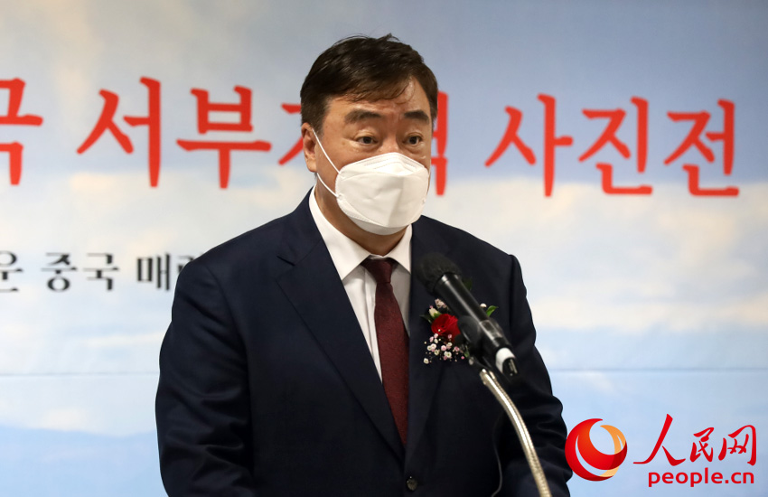 在致辭中,邢海明向在場嘉賓介紹了中國西部地區的情況。他表示,今天的中國西部已經實現了經濟的跨越式發展,社會不斷進步,民族團結和諧,人民富裕幸福。同時,他指出,近來一些西方政客、媒體對中國西部,特別是新疆、西藏等地區進行各種無端抹黑攻擊。中韓兩國都有“百聞不如一見”的說法,此次圖片展將用鮮活的畫面,展現真實、真切的中國西部。疫情過后,歡迎包括韓國在內的各國朋友到中國西部走走看看,親身領略中國西部的魅力。