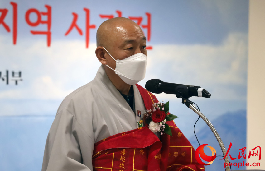 虎溟在圖片展開幕式上致辭。駐韓大使館供圖
