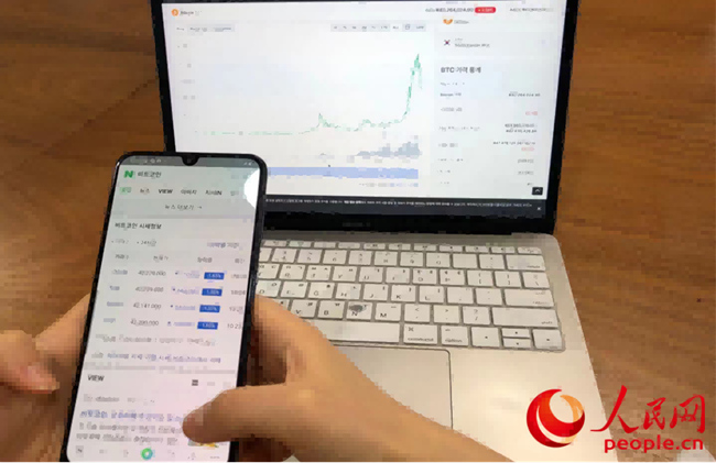 韓國上班族查看虛擬貨幣相關信息。曹翔宇攝