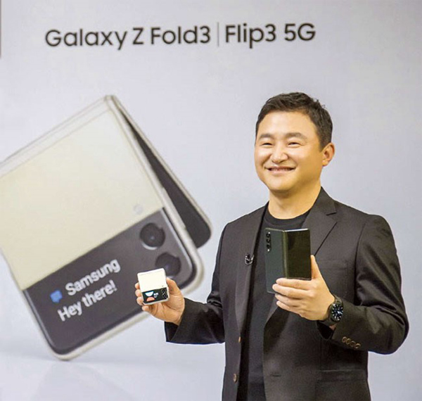 三星電子無線事業部總裁盧泰文在“三星Galaxy unpacked 2021發布會”上展示產品。圖源:三星電子