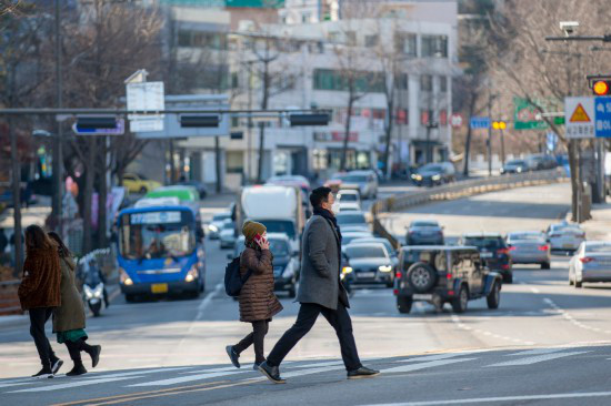 12月1日,行人佩戴口罩在韓國首爾過馬路。(新華社記者王益亮攝)