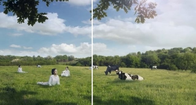 據《朝鮮日報》報道,飽受爭議的牛奶廣告于上月29日,通過企業官方社交媒體賬號發布。廣告中,身穿白衣的人們在溪邊喝水,并在草地上做瑜伽。一位拿著相機的男性冒險家試圖偷偷拍攝他們,結果不小心踩到樹杈發出聲音,這時一名由男演員扮演的“女性”轉過頭來,冒險家這才發現草地上的人們全部變成了奶牛。廣告中多次出現女性特寫鏡頭,但男性大多一掠而過。