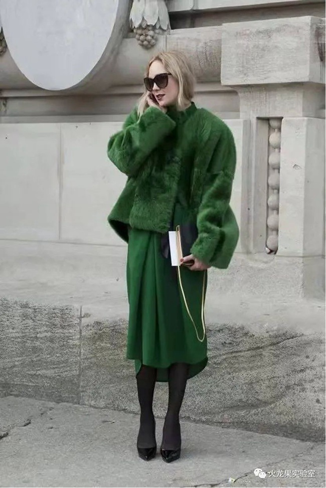 最讓果果姐念念不忘的是下面這身綠色的皮草穿搭,非常適合實穿。想馬上抄作業,給自己也置辦一身呢~