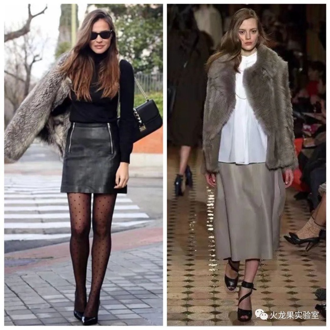 這個時候裙長決定一切。如果你想看起來很今年,那么最好選擇及膝或過膝的皮裙?纯聪旅娴膶Ρ葓D,有沒有感覺右圖更高級?