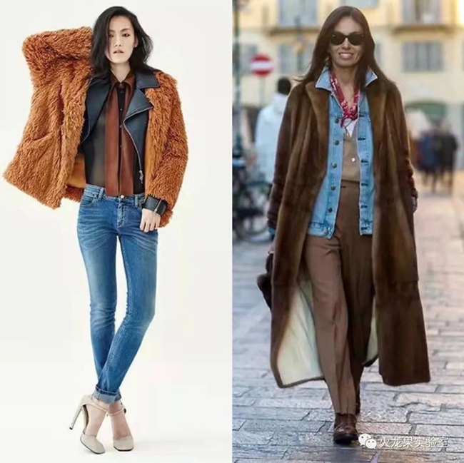 疊穿時可以用格紋、牛仔、皮衣、燈芯絨這些經典的元素與皮草適當混搭,重點是“出其不意”,卻又在情理之中,最見功力。