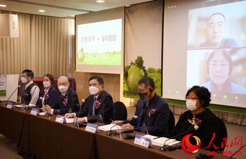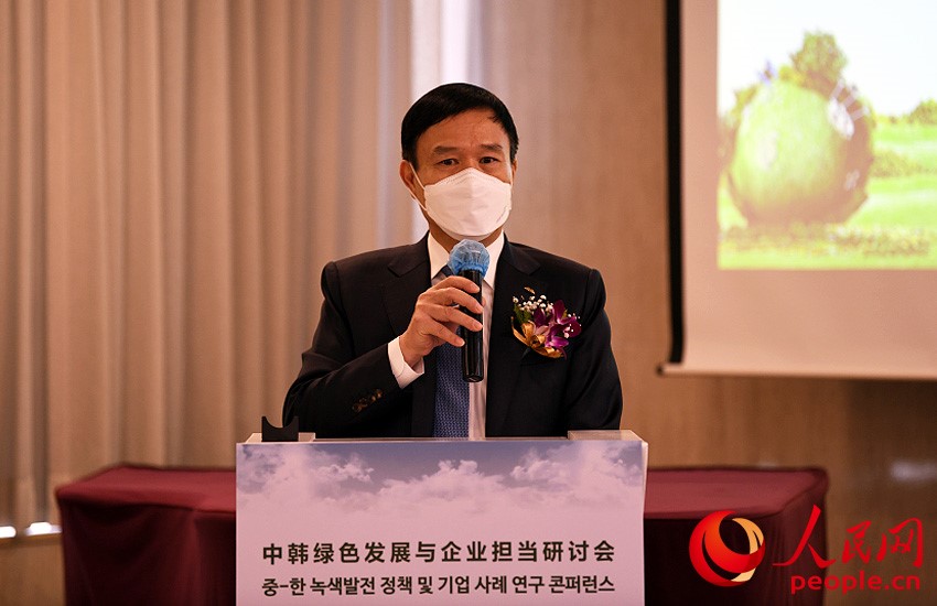 人民網首爾1月12日電(周玉波 曹翔宇) 1月12日下午,中韓綠色發展與企業擔當研討會在韓國首爾圓滿落幕。研討會由人民網韓國公司、中國光大銀行首爾分行共同主辦,韓國環境部、韓國中國商會、中關村駐韓國聯絡處協辦,以“線上+線下”相結合的方式舉行,中韓各界300余名嘉賓參會。