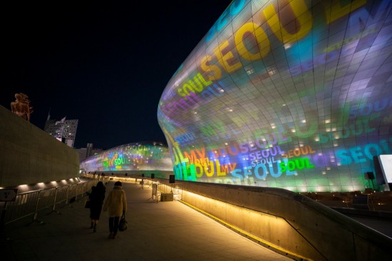 2021年12月17日在韓國首爾東大門設計廣場拍攝的“首爾之光”燈光秀。(新華社記者王益亮攝)
