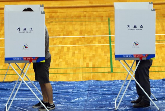 圖為2017年5月9日拍攝的選民在韓國首爾一個投票點參加韓國第19屆總統選舉投票的資料照片。(新華社記者姚琪琳攝)
