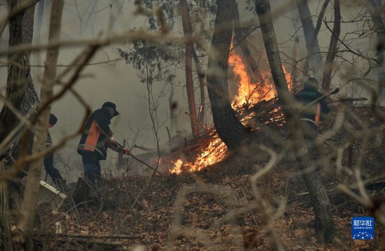 2月16日,救援人員在韓國慶尚北道一處森林滅火。新華社/紐西斯通訊社