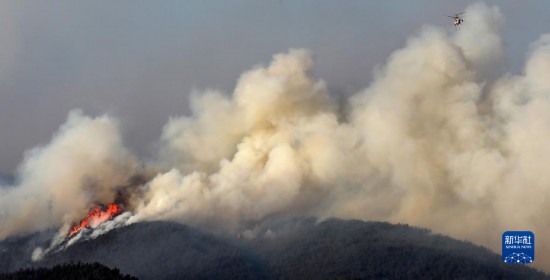 2月16日,直升機從韓國慶尚北道的林火上空飛過。新華社/紐西斯通訊社