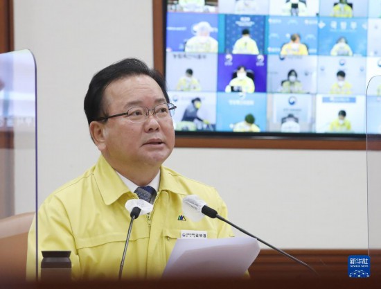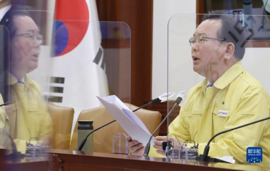 3月2日,在韓國首爾,國務總理金富謙在中央防疫對策本部應對新冠病毒會議上講話。新華社/紐西斯通訊社