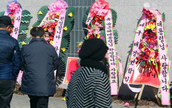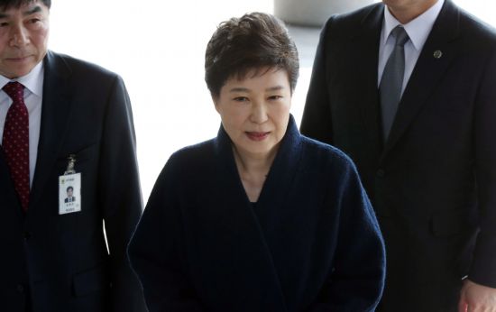 資料圖:2017年,樸槿惠接受檢方傳喚調查