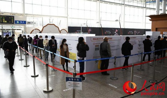 3月4日選民們在首爾站“事前投票所”排隊投票。人民網 裴埈基攝