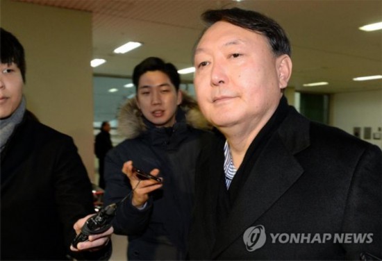 2016年尹錫悅擔任樸槿惠“親信干政門”事件特別調查小組組長后接受媒體采訪。圖片來源:韓聯社