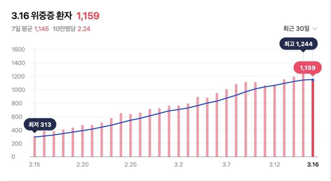 韓國新冠危重癥病例數近一個月以來持續增加。圖片來源:韓國新冠官方網站