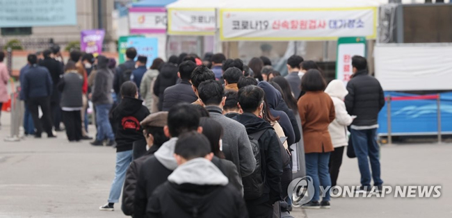 3月17日上午,市民在首爾站篩查診所排隊等待檢查。圖片來源:韓聯社