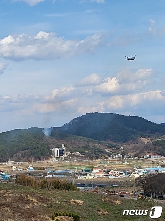 一架空軍直升機正在空中搜索失蹤的飛行員。圖源:韓媒news1