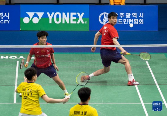 4月12日,在韓國光州市舉行的韓國羽毛球大師賽混雙首輪比賽中,中國組合王懿律/黃東萍以2比1戰勝隊友郭新娃/劉玄炫,晉級下一輪。