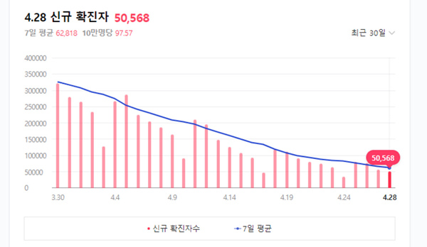 韓國新冠確診人數連續6周呈下降趨勢 圖源:網絡截圖