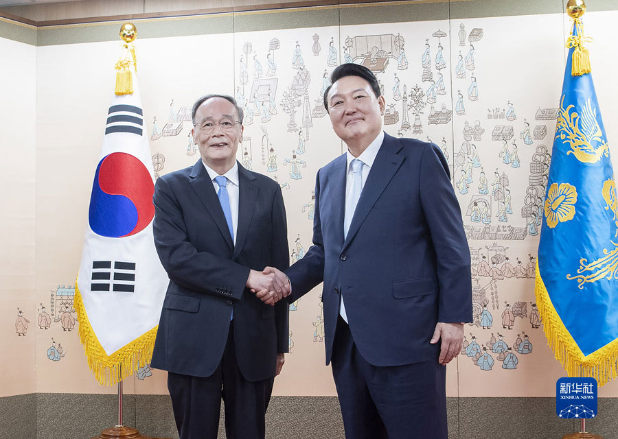 5月10日,應韓國政府邀請,習近平主席特別代表、國家副主席王岐山在首爾出席新任總統尹錫悅就職儀式并同其舉行會見。新華社記者 李 濤攝